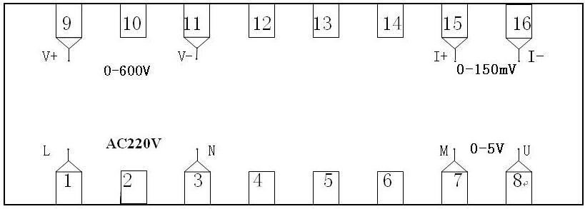 其中1,3接進(jìn)線電源AC220V,儀表端子7點(diǎn)接G5系列電源的M點(diǎn),儀表端子8點(diǎn)接G5系列電源的U點(diǎn),9、11接G5系列電源的V+,V-點(diǎn),15、16接G5系列電源的I+、I-點(diǎn)。