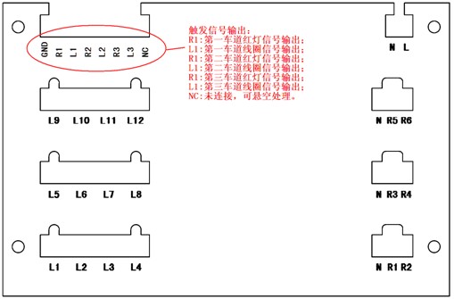 輸入:L1、L2為車道一線圈接入,L1為第一道線圈,L2為第二道線圈;