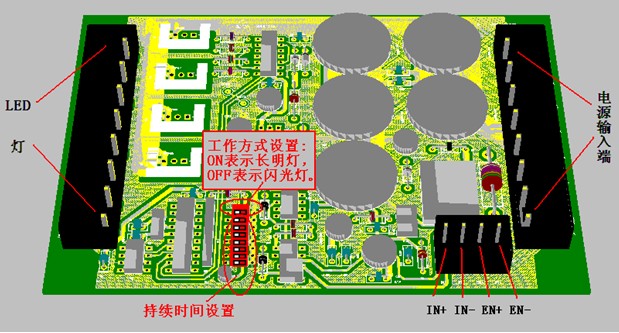 撥碼快關(guān)設(shè)置:1=ON表示長明燈,1=OFF表示閃光燈;